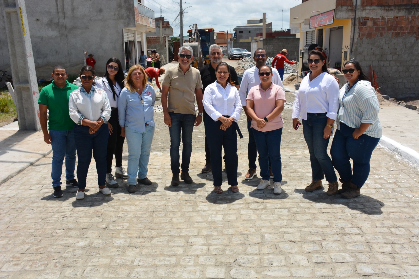 Em mais uma agenda de monitoramento de obras no município, nesta terça-feira (19), a prefeita do Ipojuca, Célia Sales, visitou serviços de pavimentação e drenagem nas ruas de Zé Pojuca. A ação, que faz parte do maior programa de pavimentação e drenagem da história do município, o Minha Rua Top, teve os primeiros trechos concluídos, em julho deste ano, totalizando mais de 5.350 m², de pavimentação em paralelepípedo, calçamento, sistema de drenagem e sinalização. Das 44 ruas que estão em construção na comunidade, 31 já estão prontas ou quase finalizadas e 13 estão em andamento. Só em Zé Pojuca serão entregues, no total, 60 vias, que beneficiará mais de mil famílias e geração de mais de 200 empregos. As obras estão sendo realizadas por meio da Secretaria de Infraestrutura e estavam presentes no local secretários, diretores e engenheiros.