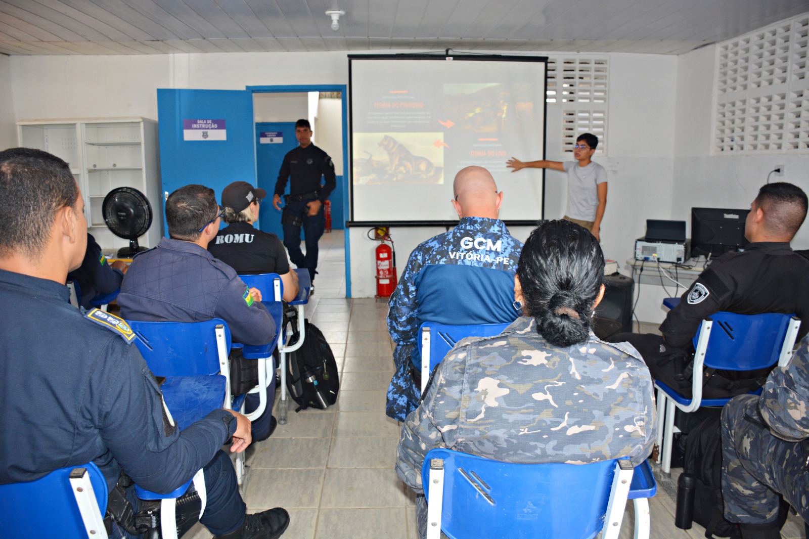 O treinamento contempla uma parte teórica onde serão abordados assuntos como noções de adestramento, patrulhamento e operações para cães e primeiros socorros. Seguido de parte prática, totalizando 50h/aula. Participam do curso guardas de Ipojuca, Cabo, Igarassu, Toritama e Vitória de Santo Antão.