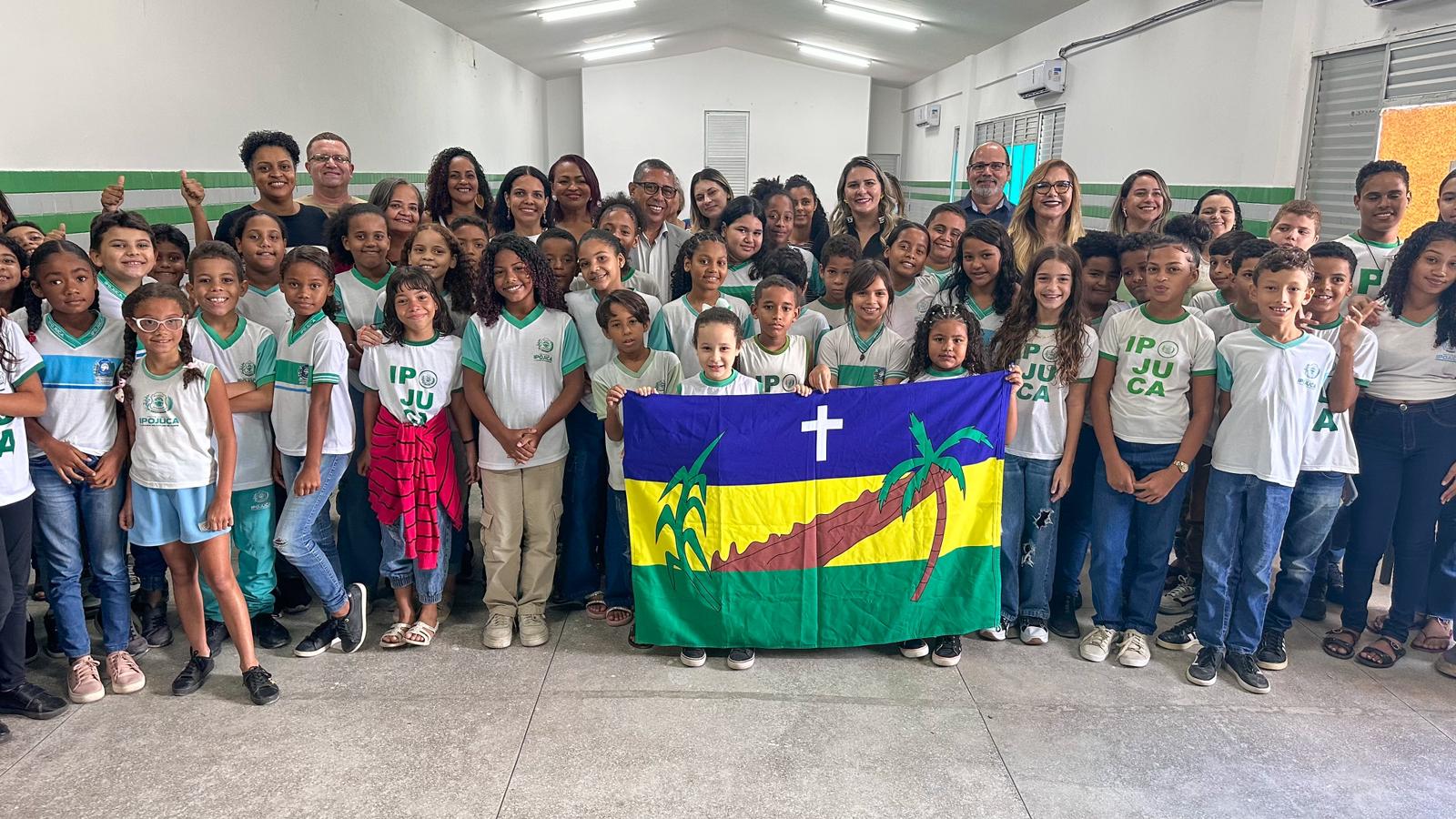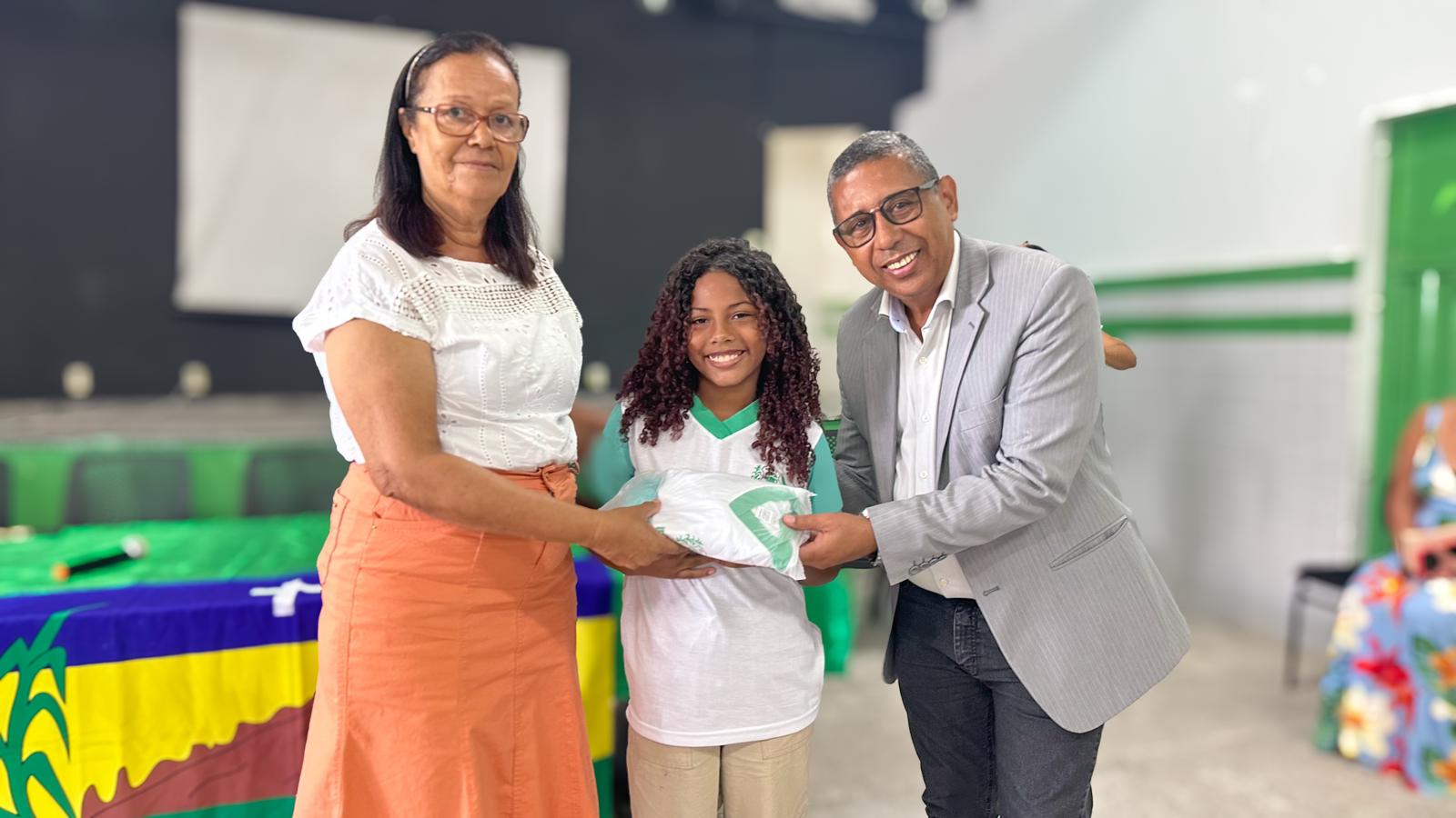 Para os estudantes do ensino fundamental e EJA foram entregues camisa machão, camisa manga curta, bermuda em tecido helanca e calça jeans, além de um conjunto de tênis com meia para os da educação infantil. “Para nós que estamos na educação isso é uma forma de padronizar e garantir a identificação desses estudantes na chegada da escola. Também vemos como uma forma de proteção para que nenhum estranho entre dentro do nosso espaço educacional. Além de tudo isso, também pensamos na parte econômica do uso de roupas pessoais. O novo fardamento está bem bonito, e nossa Rede Municipal de Ensino merece”, declarou o secretário de Educação, Francisco Amorim.
