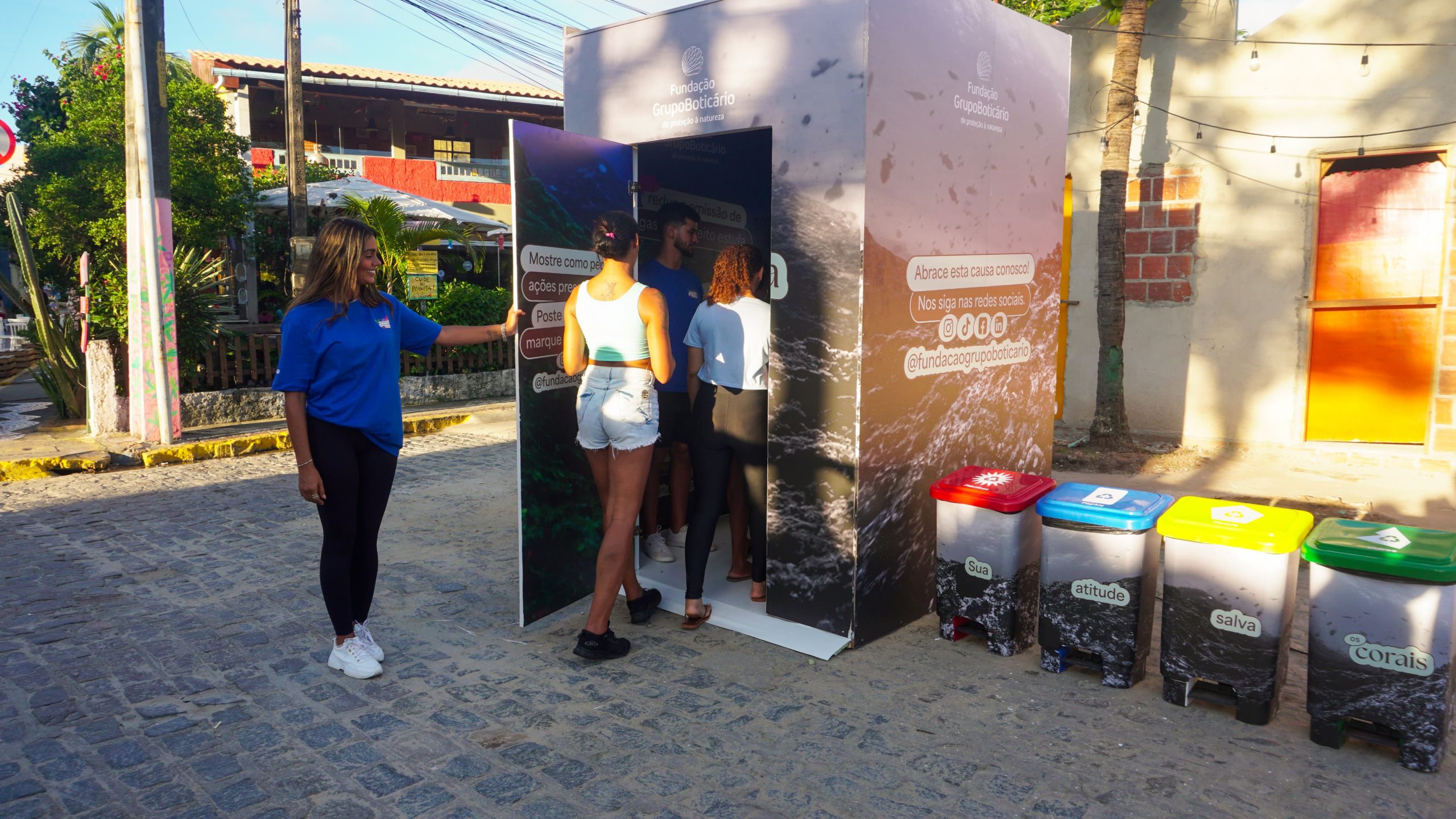 Além de abordar a temática da temperatura dos oceanos e branqueamento dos corais, foi explanada a questão do descarte correto dos resíduos, pois os mesmos despejados no mar, contribuem também para o estresse térmico que vem sendo observado no decorrer do tempo. No local, as pessoas podiam observar coletores de resíduos com suas respectivas cores e uma cabine onde se assistia um vídeo sobre a importância dos recifes de corais e do que está ocasionando o aumento de temperatura e o que podemos fazer para amenizar.