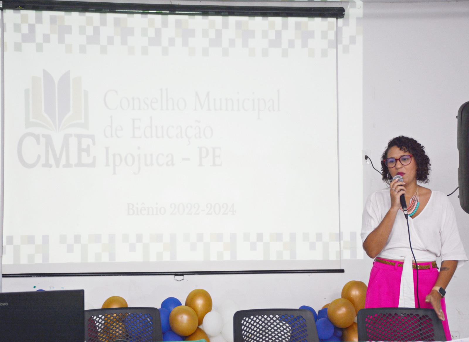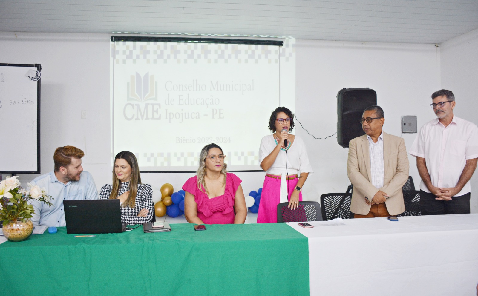 A presidente do Conselho no biênio 2022-2024, Mariana Maciel, abriu a cerimônia e prestou contas do trabalho realizado no período. “Estou extremamente agradecida pela confiança e pela parceria, cada coisa que a gente realizou foi um trabalho conjunto. A educação se faz assim, tijolinho por tijolinho e numa base sólida”, falou Mariana. “Quero agradecer a todos os colegas que todos os dias trabalham arduamente para que a educação do Ipojuca se torne cada vez melhor, nós já temos visto isso nos nossos resultados. Quero parabenizar e agradecer pela parceria e pela capacidade de diálogo, é um sentimento de pertencimento, mas sem apropriação, obrigada pela contribuição de todos, aos que estão sendo reconduzidos e aos que estão sendo agregados”, falou a diretora de Desenvolvimento de Ensino, Karla Cristian.