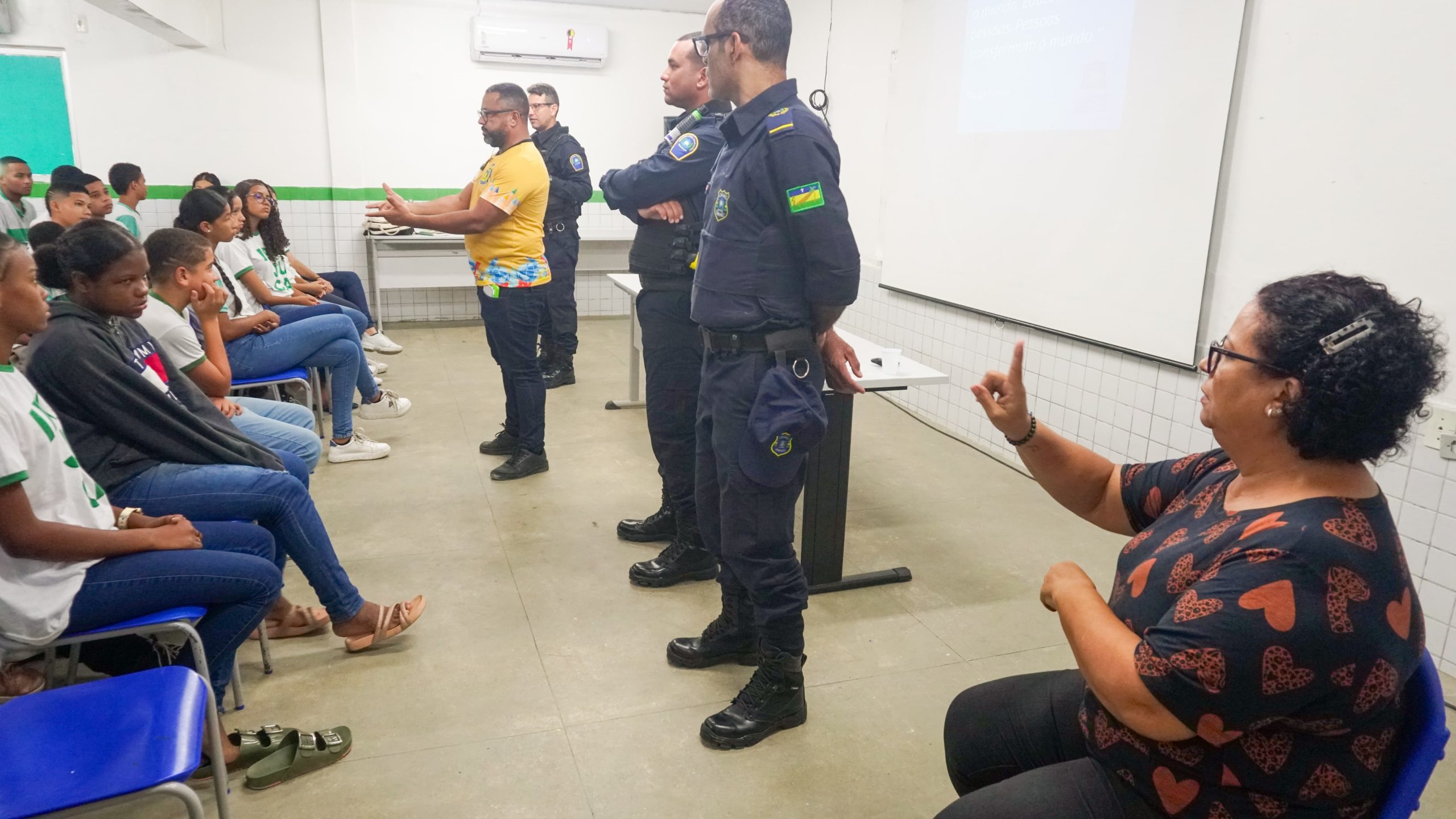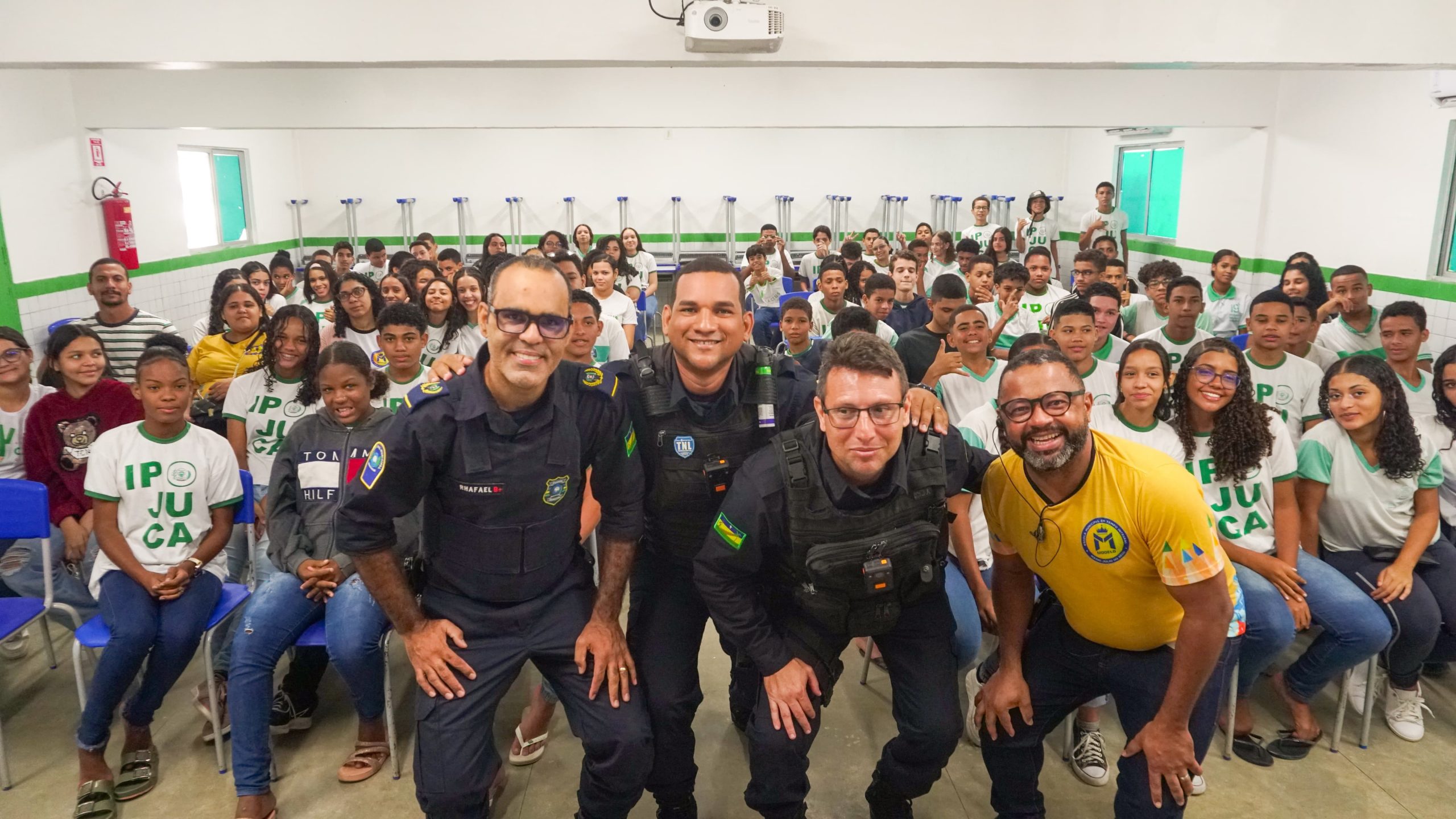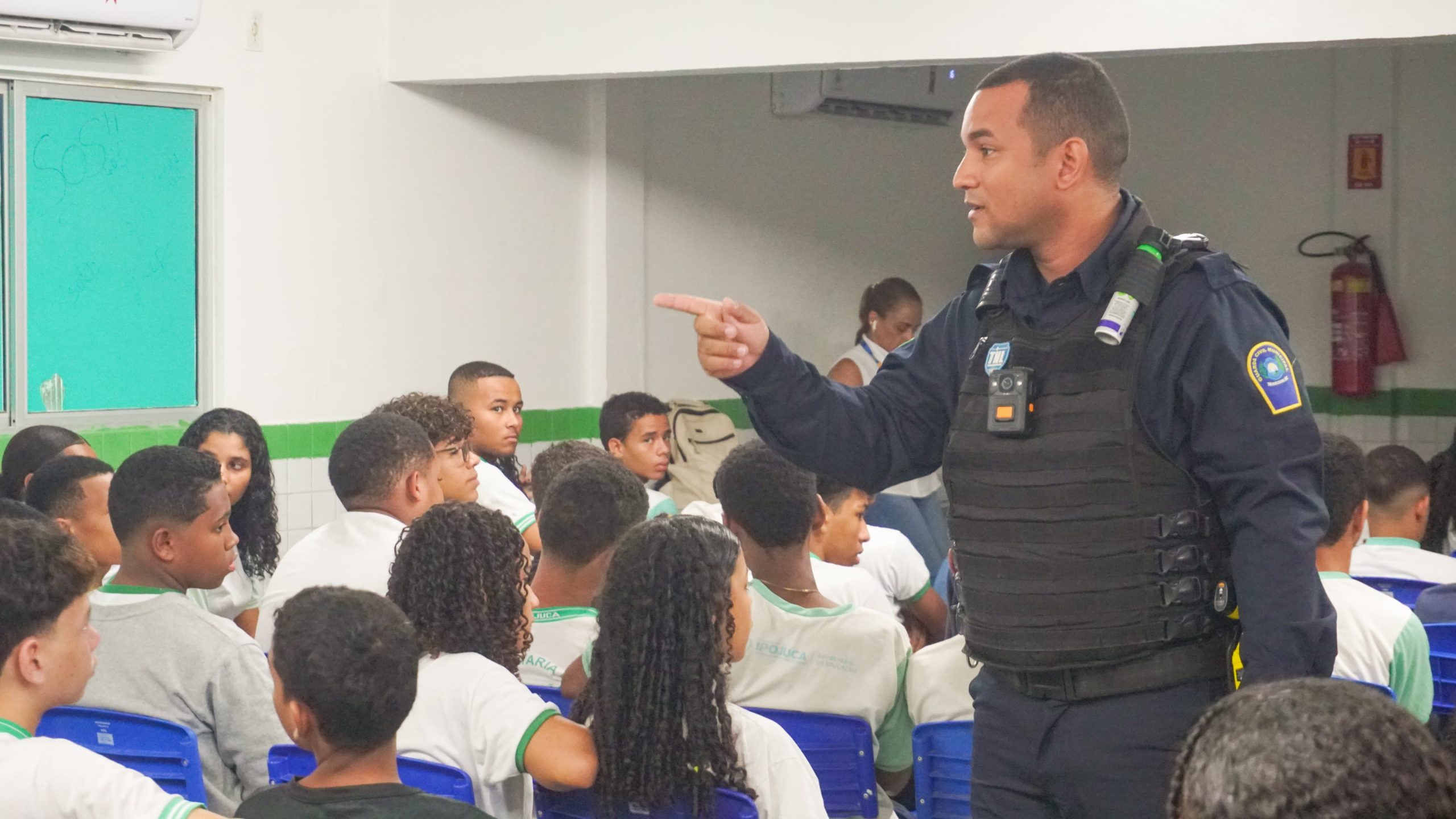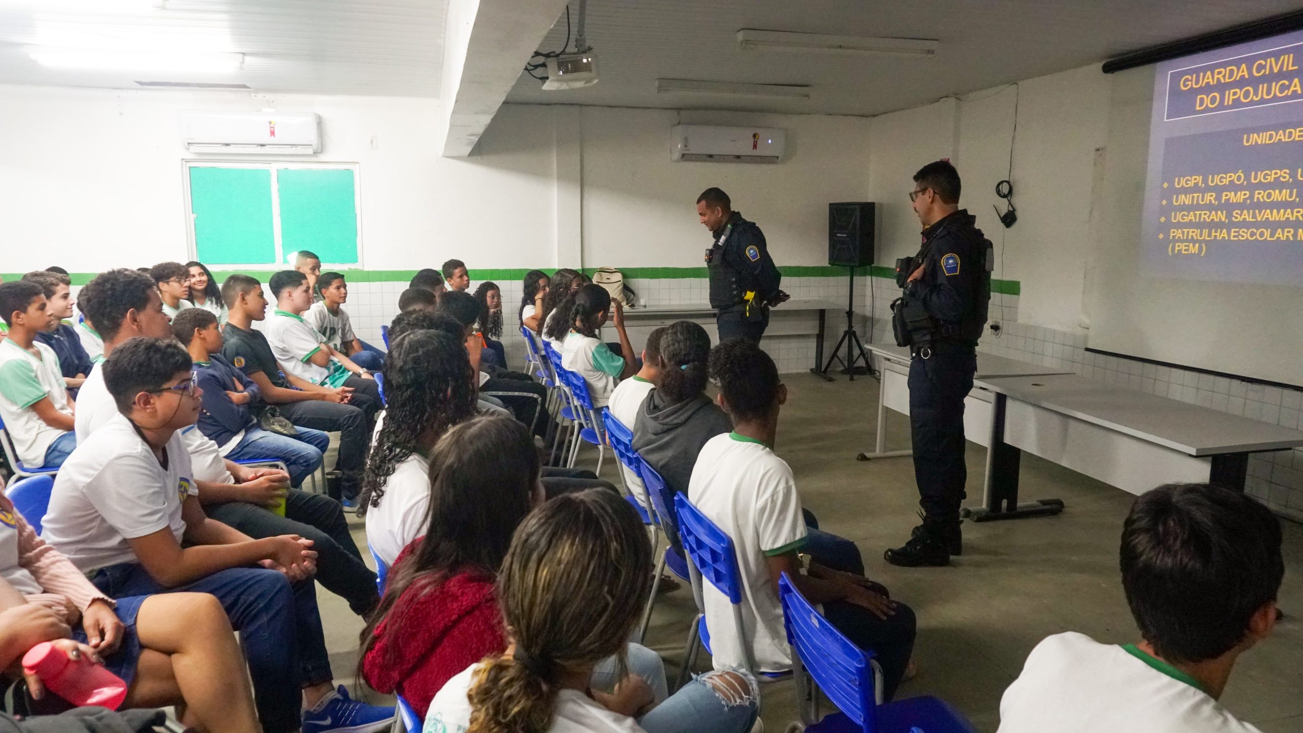 A atividade, que acontece novamente na próxima quinta-feira (25), no mesmo local, é voltada para estudantes de 11 a 14 anos da rede pública municipal. Entre os palestrantes, o diretor da unidade de Ensino, José Antônio, o subcomandante da Patrulha Escolar, o subinspetor, Rhafael Gomes, além dos guardas civis municipais, Zóstenes de Andrade, Reinaldo Barros, Eudes Lima e José Virgínio. Além dos temas principais, também foram falados informações sobre a “Preservação ao patrimônio público, direitos e deveres à luz do Estatuto da Criança e do Adolescente”.