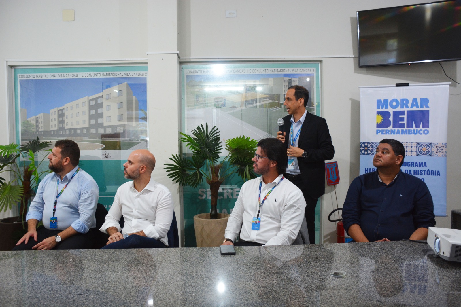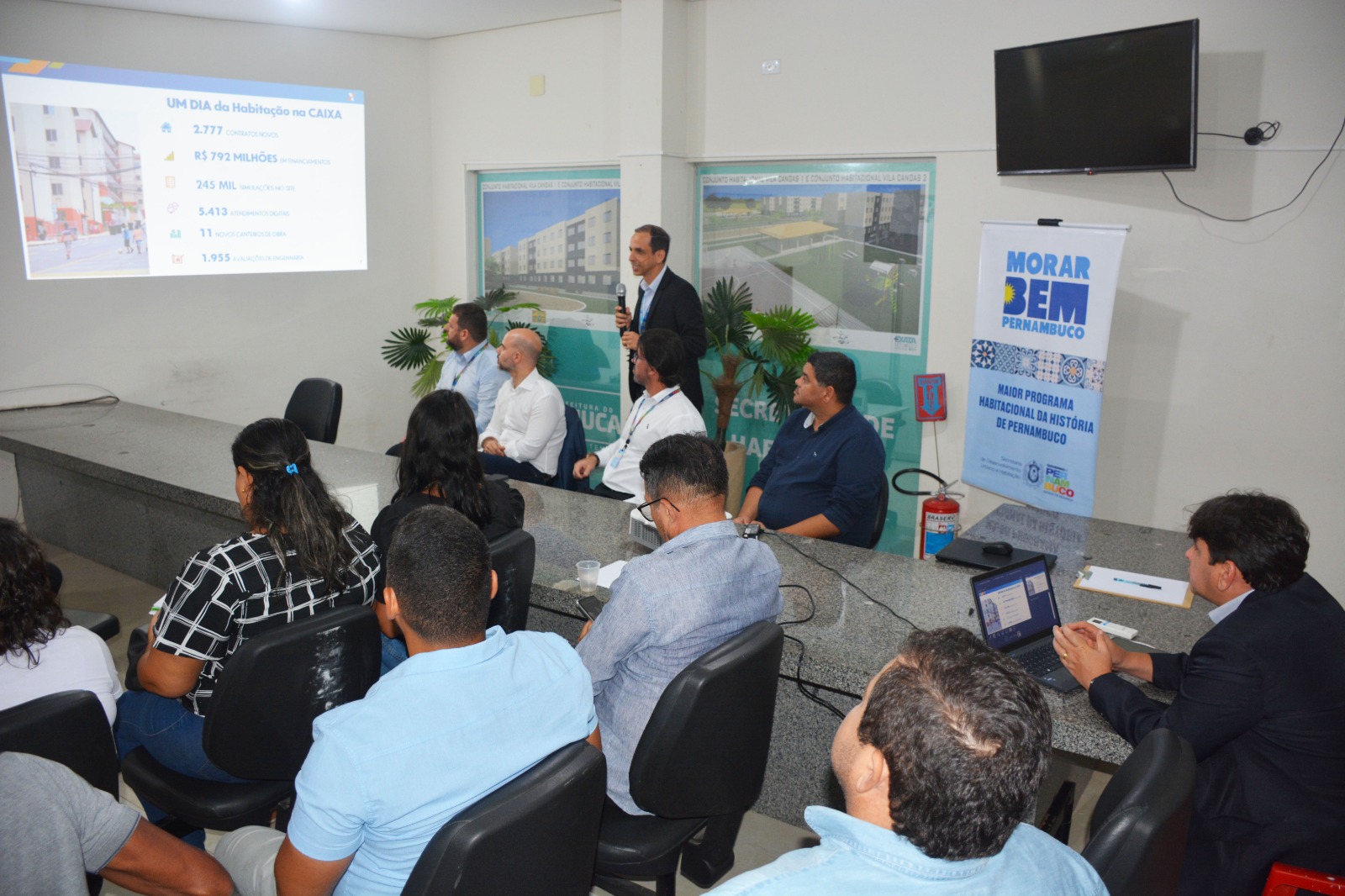 Entre os participantes, o deputado estadual Romero Sales Filho; o secretário executivo de Políticas Urbanas e Habitação de Pernambuco, André Fonseca; o diretor-presidente da Companhia Estadual de Habitação e Obras (Cehab), Paulo Lira; e o gerente-geral da Caixa Econômica Federal (CEF), André Siqueira.