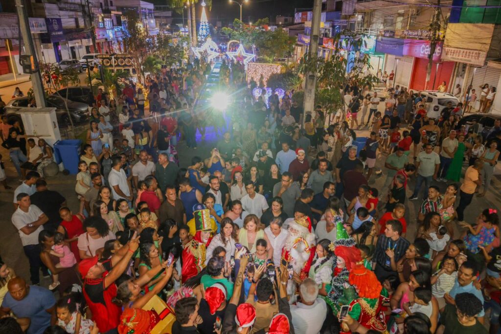 O espaço público foi totalmente transformado com cenários temáticos, enfeites instalados e uma iluminação diferenciada, criando um ambiente de celebração e encantamento. A programação cultural da noite contou com apresentações da Orquestra Criança Cidadã Meninos do Ipojuca, do Coral dos Idosos e dos Servidores, da Banda Marcial Santa Cecília e do grupo Albatroz, que deram ainda mais brilho ao evento.