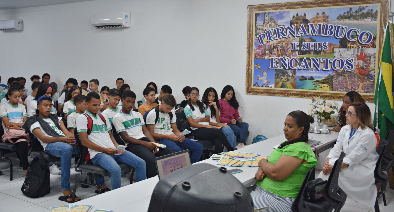 Com atenção redobrada, para além da educação, a Prefeitura do Ipojuca, por meio da Secretaria de Saúde, promoveu nesta quinta-feira (14), na escola Municipal Professor Aderbal Jurema, ações do Programa Saúde na Escola, em parceria com a Gerência Educacional de Programas e Projetos. Para os estudantes dos anos iniciais, o tema foi o Combate contra Aedes Aegypti ministrado pelos agentes de endemias. Já para os do oitavo e nono ano, Saúde Sexual e Reprodutiva conduzido pela enfermeira Angela Faria. A ação teve como objetivo prevenir a gravidez e doenças sexualmente transmissíveis e a Proliferação do mosquito da dengue, junto com atualização vacinal. De acordo com o cronograma de Março, o programa contemplará as escolas Jesus Nazareno, Santa Inês, Aderbal Jurema, Manoel Nogueira, Paroquial São Miguel, e Bela Vista.