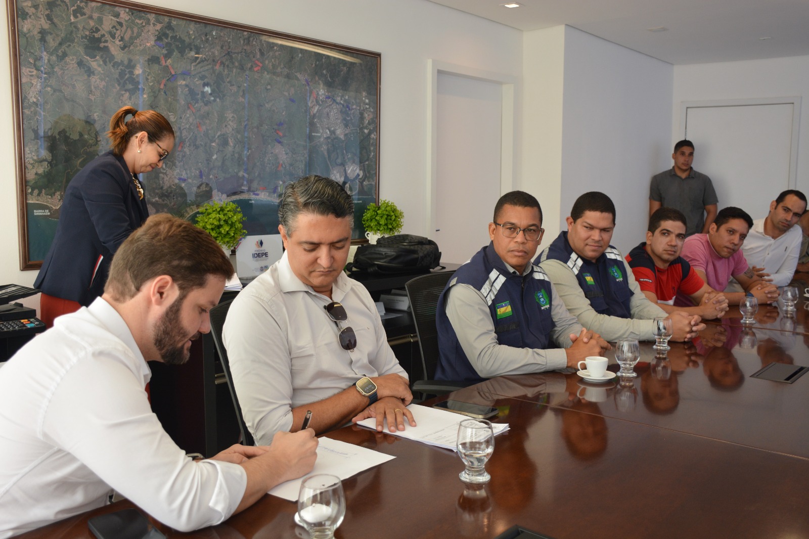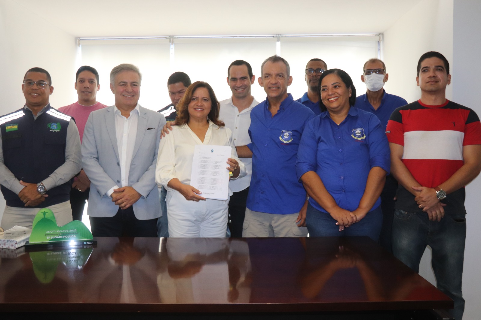Em mais uma iniciativa que valoriza a Guarda Municipal do Ipojuca, nesta quinta-feira (21), a prefeita Célia Sales assinou o projeto de lei que padroniza o Enquadramento Funcional por Tempo de Serviço da categoria profissional, responsável pela segurança e ordem pública do município. Com a decisão, que seguirá para a Câmara de Vereadores em regime de urgência, os mais de 400 servidores da corporação terão suas movimentações de carreira asseguradas, garantindo isonomia na progressão funcional dentro das classes de guarda, subinspetor e inspetor. O ato, realizado no gabinete da prefeita, contou com a presença de representantes do sindicato da categoria, além dos secretários municipais Osvaldo Morais (Defesa Social), Romero Sales (Governo), Paulino Valério (Planejamento), Francisco Alheiros (Logística) e Marcos Lira (Procuradoria Geral).