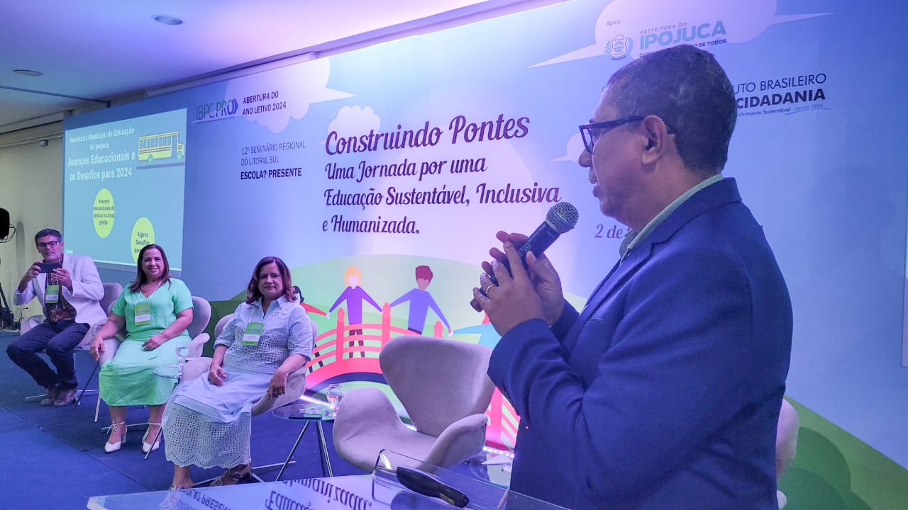 Professores, coordenadores pedagógicos, gestores e equipe técnica da rede municipal do Ipojuca participaram, nesta sexta-feira (02), do 12º Seminário Regional do Litoral Sul – Escola? Presente, que marcou a abertura do Ano Letivo do município de 2024. O evento, promovido pela Prefeitura do Ipojuca, por meio da Secretaria de Educação, em parceria com o Instituto Brasileiro Pró-Cidadania, contou com a presença da prefeita Célia Sales, e teve como tema “Construindo Pontes: uma jornada por uma Educação Sustentável, Inclusiva e Humanizada”. A iniciativa realizada pela manhã e à tarde teve ainda a palestra especial da filósofa e escritora Djamila Ribeiro, que falou aos presentes sobre educação e as relações étnico-raciais e diversidade cultural na escola. Para recepcionar os professores com muita animação, o momento cultural ficou por conta da apresentação da Companhia Educandartes.